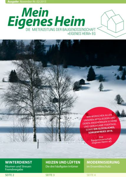 In unserer Mieterzeitschrift erhalten Sie als Interessent und Mieter aktuelle Infos über interessante Themen wie Infos über Neubauten, Verkäufe, Termine zur Mitgliederversammlung, Infos zu Dienstleistern und vieles mehr.